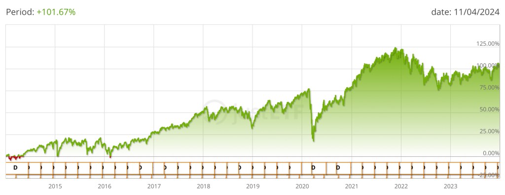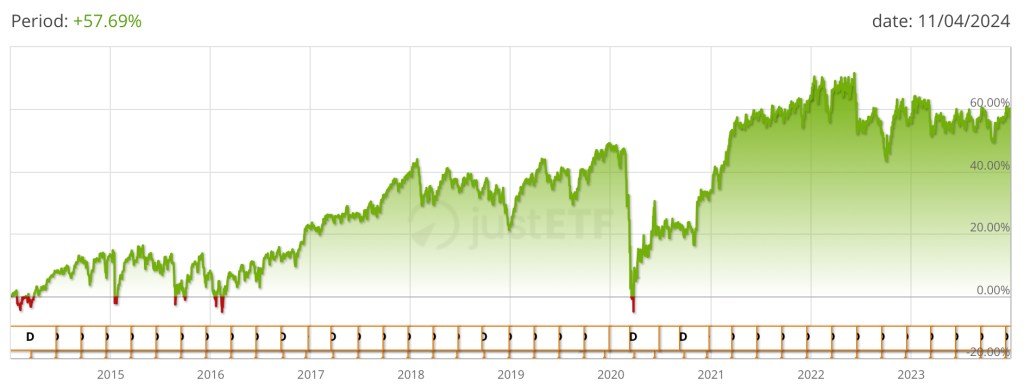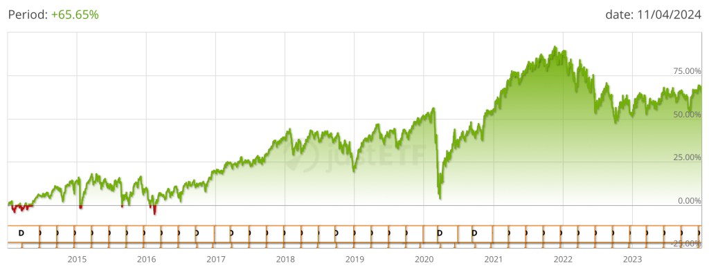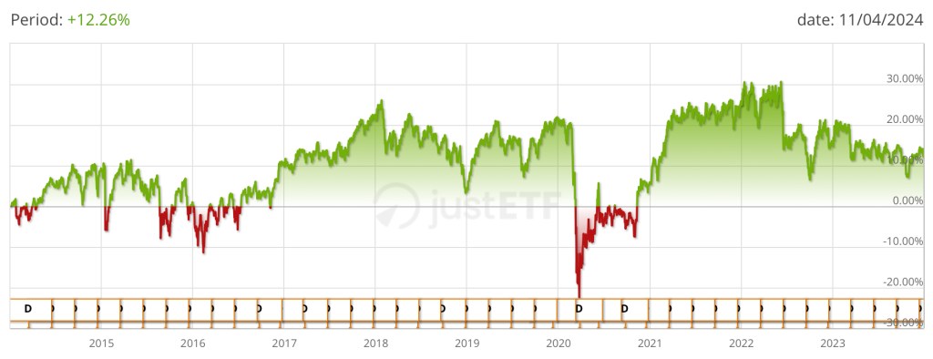 I was also curious to see how high dividend yield (HDY) paying stocks are performing in the market. So, I compared two major ETFs from Vanguard: one is globally diversified (VWRL, IE00B3RBWM25) and the other is also globally diversified, but with HDY stock preference (VGWD, IE00B8GKDB10). I used the justetf.com website to compare both funds’ performance, considering dividends in the calculation (dividends are virtually reinvested at the ex-date). As seen from the results below, over the past 10 years, VWRL has outperformed VGWD both with and without dividends accounted for. This suggests that companies paying high dividends do not necessarily perform better in the stock market.